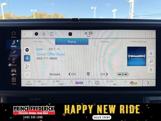 - Radio w/Seek-Scan, Clock, Speed Compensated Volume Control, Aux Audio Input Jack, Steering Wheel Controls, Voice Activation, Radio Data System and Uconnect External Memory Control