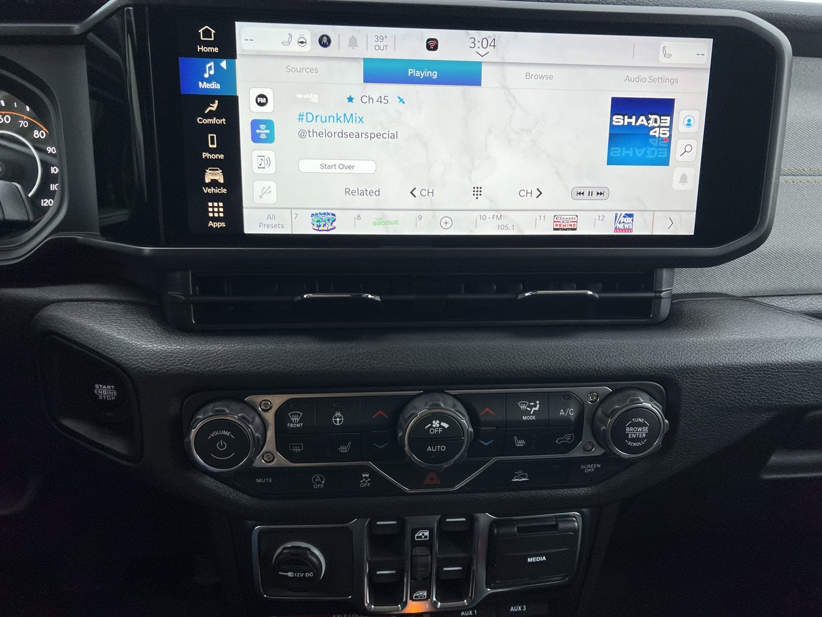 - Radio w/Seek-Scan, Clock, Speed Compensated Volume Control, Aux Audio Input Jack, Steering Wheel Controls, Voice Activation, Radio Data System and Uconnect External Memory Control