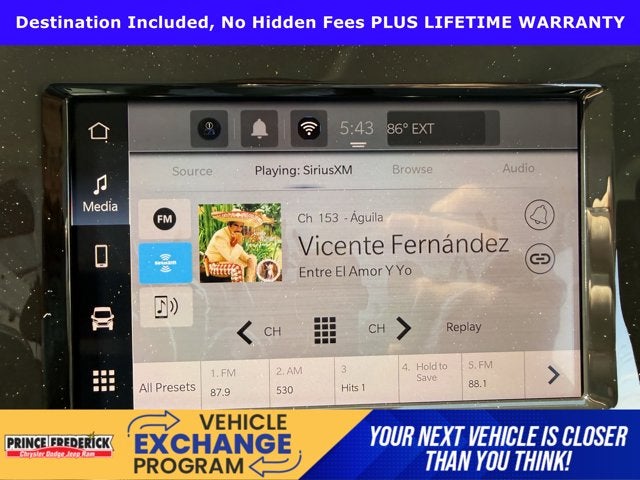 - Radio w/Seek-Scan, Clock, Speed Compensated Volume Control, Aux Audio Input Jack, Steering Wheel Controls, Voice Activation and Uconnect External Memory Control