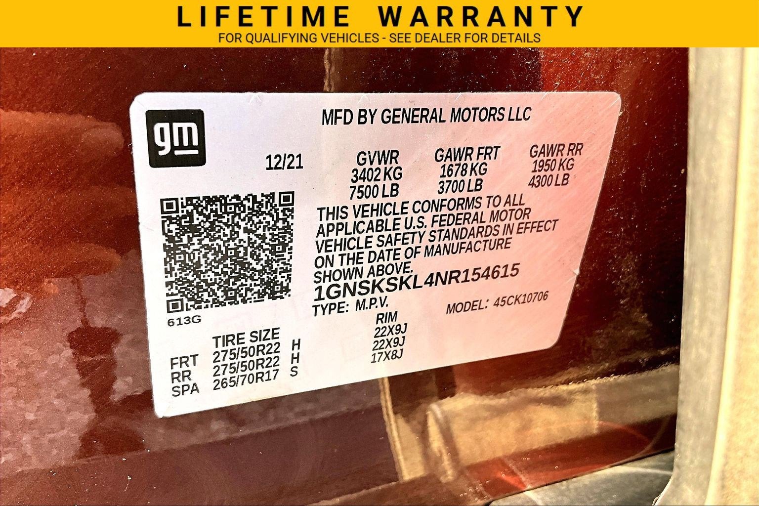 - Front Tire Size: 275/50R22