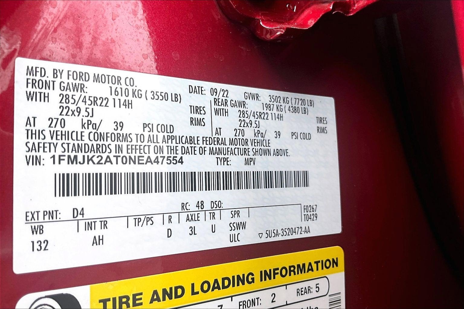 - Front Tire Size: P275/55HR20