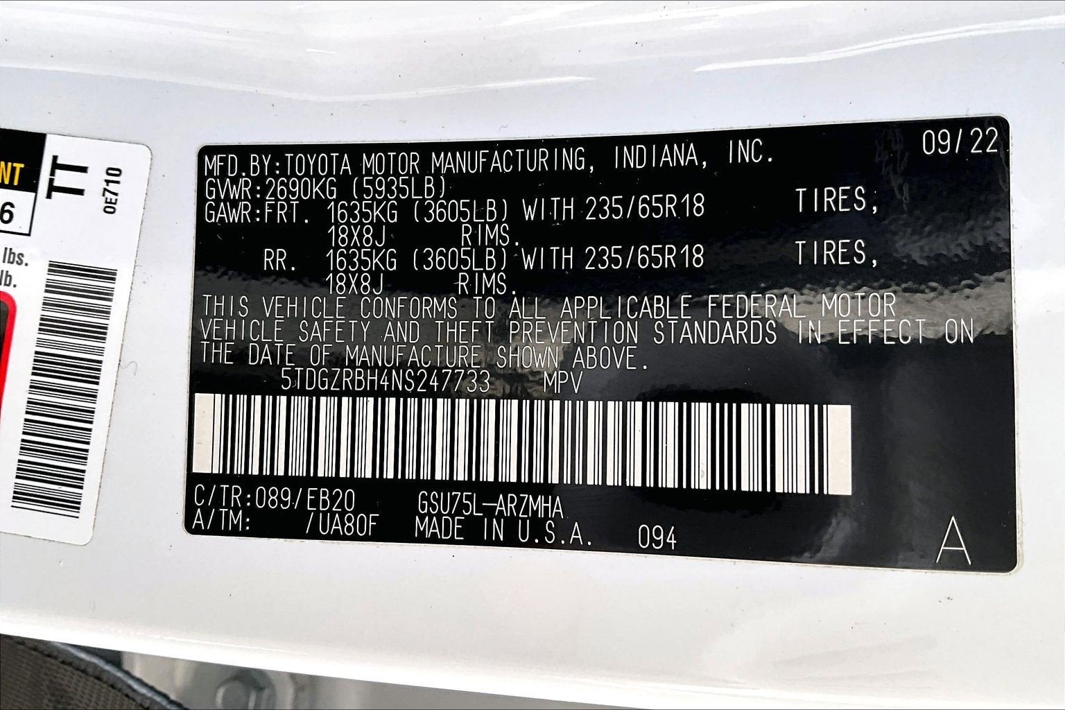 - Front Tire Size: P235/65VR18